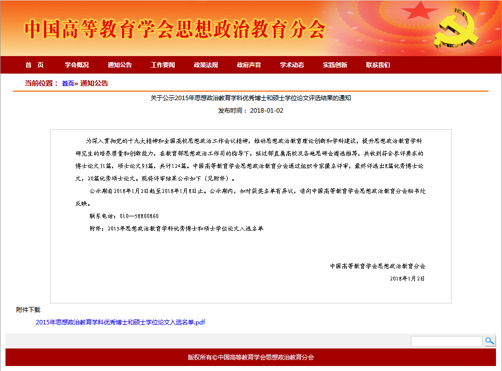 中国高等教育学会思想政治教育分会于2016年11月开展针对2015届全国思想政治教育学科优秀博士学位论文评选工作,评选结果于近期公布,泰国A片