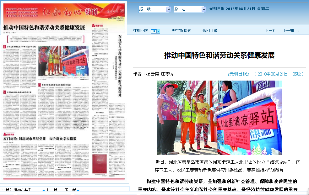 教授杨云霞和人文与经法学院博士研究生庄季乔联合署名的理论文章《推动中国特色和谐劳动关系健康发展》。