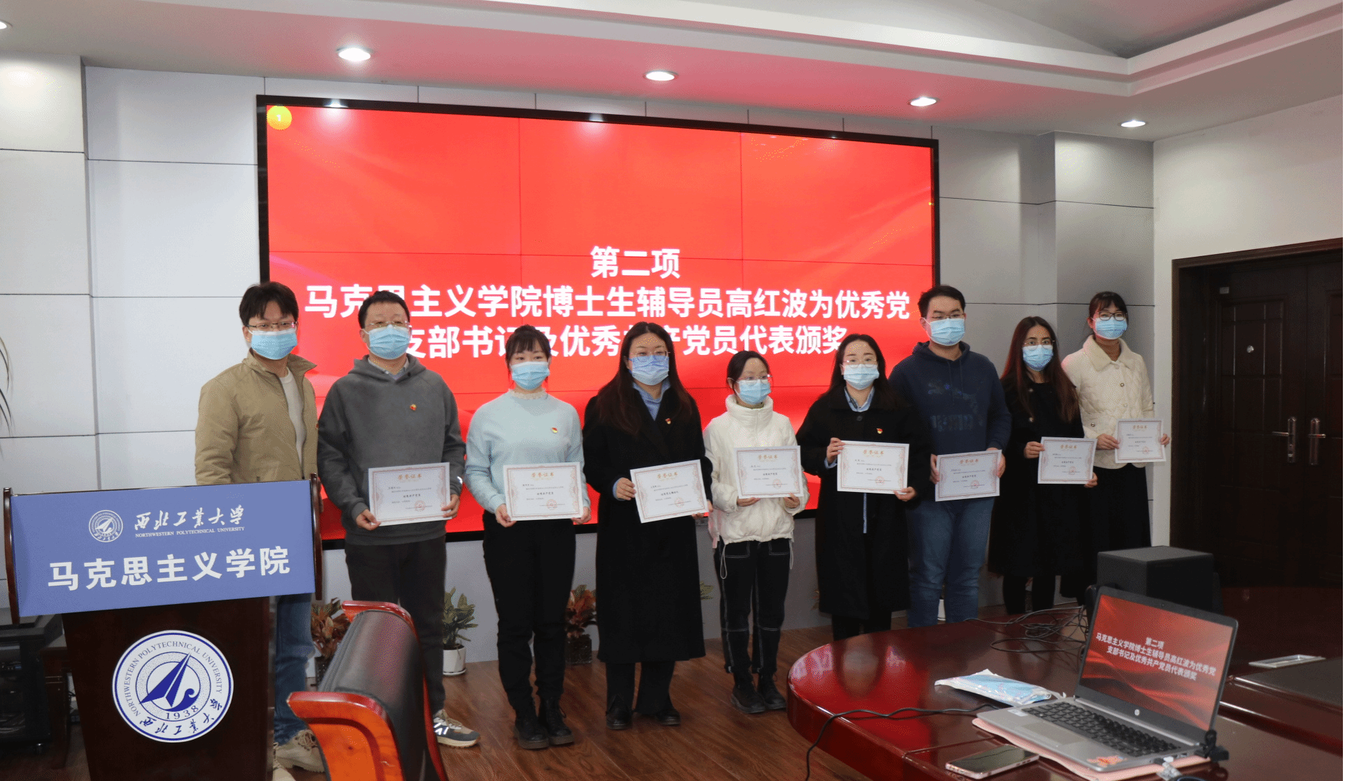 最后,学院党委副书记李刚对获奖同志表达了祝贺的同时倡导与会人员珍惜党员身份,继续发挥先锋模范作用,鼓励学生党支部书记在工作中讲求方式方法,珍惜时间,谦虚谨慎,勤奋学习,踏实工作。