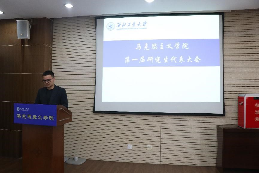 对第一届研究生代表大会顺利召开表示最诚挚的祝贺,也对研究生会筹备工作给予了肯定。随后,他对研究生会委员提了三点要求:第一、要做到不忘初心、牢记使命,树立“服务第一”的理念,在服务同学中,锻炼能力、增强本领、实现自我价值;第二、要做到尽职尽责、开拓创新,以饱满的热情和昂扬的精神状态尽快投入到具体工作中;第三、要做到在马言马、一马当先,将马克思主义看家本领贯穿到理论学习、学术交流、团学活动全过程,充分展现学院独特风采。