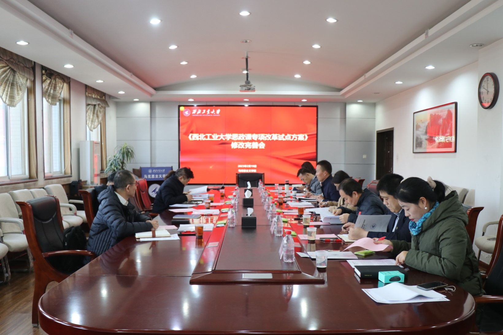 会上,蒲传新就1月6日学校办公会专题讨论《方案》改进措施的落实情况作简要汇报,杨云霞等班子成员围绕《方案》分别就学校思想政治理论课建设的修改完善工作作了补充。