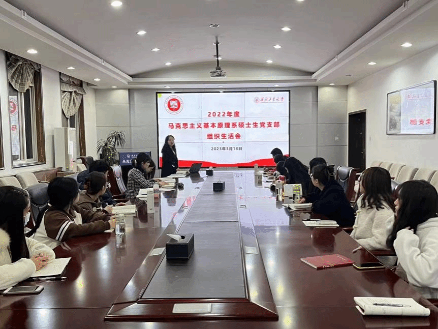 马克思主义基本原理系硕士生党支部在学院楼208召开2022年度组织生活会和民主评议党员工作会议,由马克思主义基本原理系硕士生党支部书记王慧新主持,学院团工委书记、辅导员王换老师作为督导员全程参与会议。