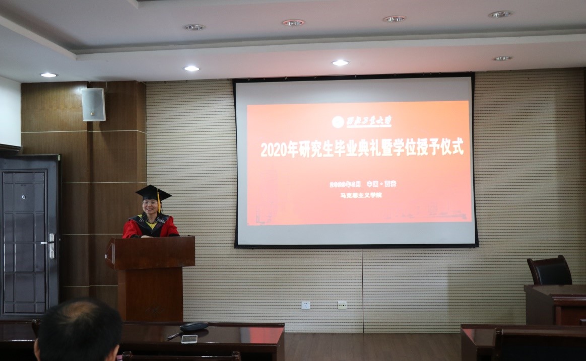 在学院305会议室举行了专属马院师生的“2020年研究生毕业典礼暨学位授予仪式”。