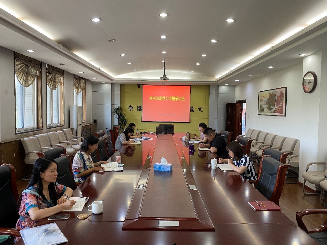 5月28日下午3点,机关党支部在学院楼208会议室召开党规专题学习研讨会,会议由支部书记杜瑶主持,机关党员同志积极参会。