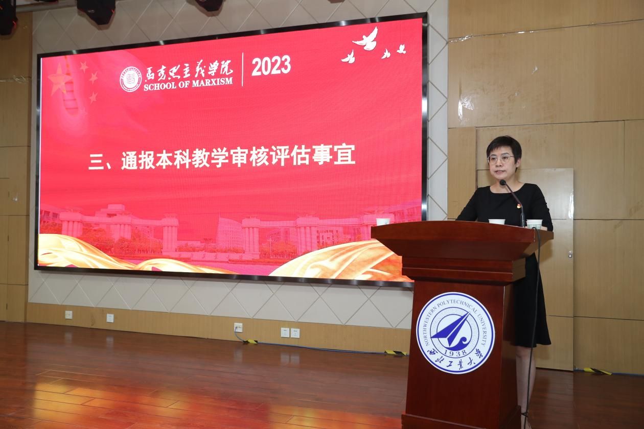 副院长贺苗通报了本科教学审核评估的相关事宜。她详细介绍了评估的过程和评估组的反馈意见,评估组对课堂教学、教学档案和座谈会等方面提出了一些问题和建议。她强调,教师们要重视评估反馈意见,关注教学质量,合理安排课程和考试,确保教学工作的规范和质量。