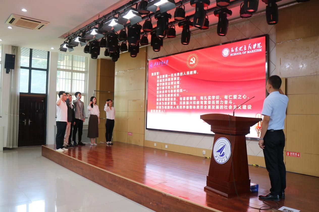 大家庭表示热烈欢迎。接着,举行了庄严的新进教师入职宣誓仪式。全体新入职教师右手握拳庄严宣誓,立志成为“四有”好老师,终身为国家富强、民族振兴和教育繁荣而努力奋斗。掷地有声的誓词,是每一位教师对教育事业的庄严承诺。