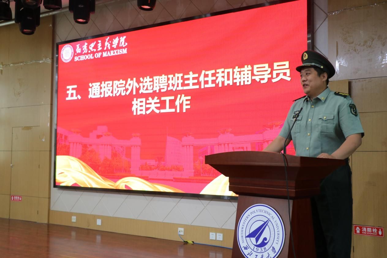 学院党委副书记李刚通报院外选聘班主任和辅导员相关工作。他强调,院外选聘班主任和辅导员要按照规章制度开展工作,要担负起相关责任,有强烈的使命感。他指出,学院研究生在其他学院担任兼职辅导员时,必须经过导师的同意,且要有责任和担当。