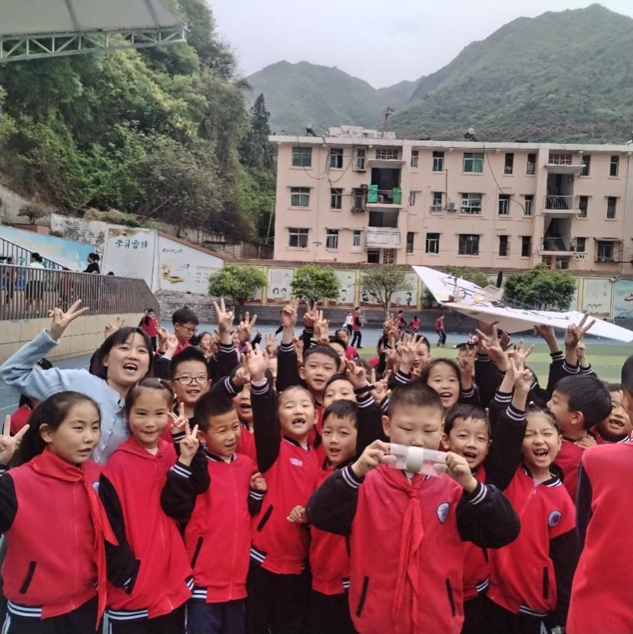 师生一行还前往略阳县东关小学、接官亭镇中心小学开展航天科普宣传进校园活动,在学校操场上分别进行了固体火箭发动机模型手工制作、无人机和自制翼身融合遥控测试机飞行表演。西工大学生蓝色学堂航空科普志愿者服务队队长赵竞元举起飞机上场瞬间,现场的气氛就被点燃,学生们的激情瞬间被激发,航模飞机在所有孩子们的欢呼声中直入云霄,在精湛的操控下于操场上盘旋,爬升,俯冲,时而高空,时而低空,时而加速,时而慢飞,伴随种种特技动作,引发现场学生不断地呐喊。航天航空科普产品,一端连接着孩子们美好的记忆,另一端连接着他们向往蓝天,逐梦苍穹的志向。