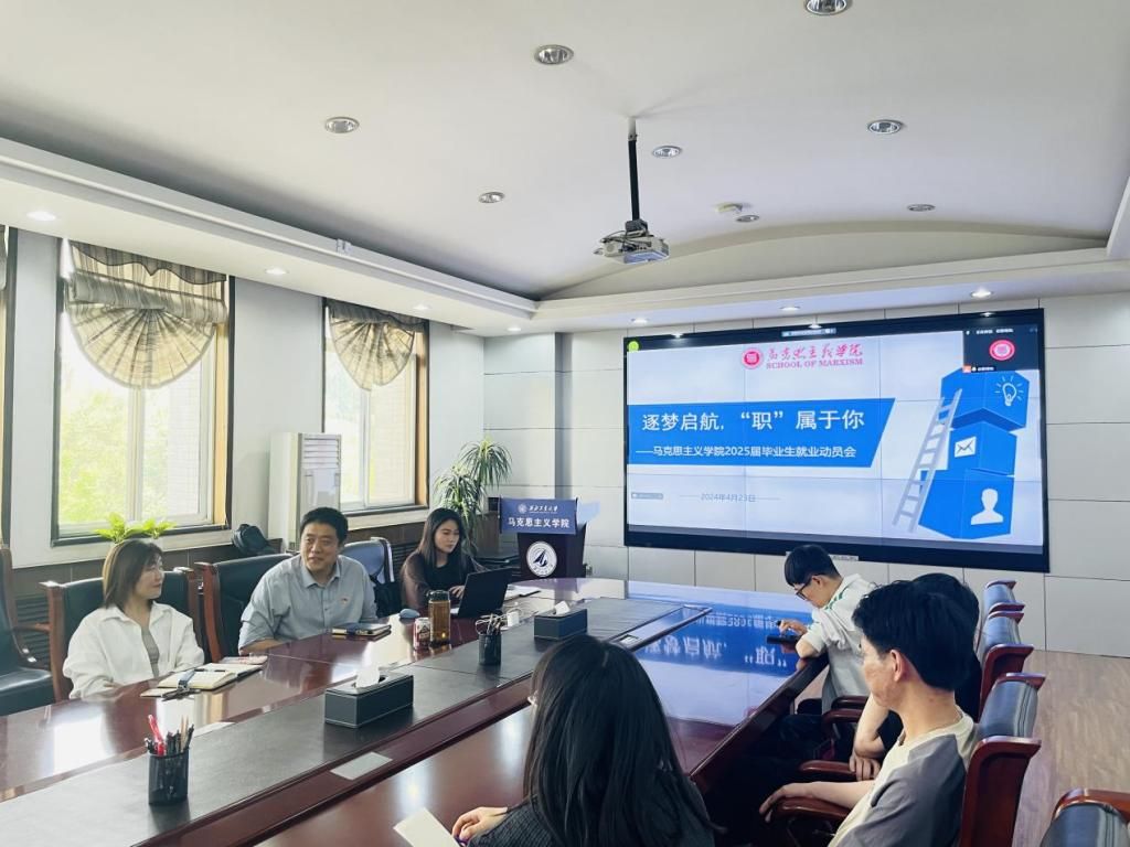 在208会议室召开了以“逐梦启航 ‘职’属于你”为主题的毕业生就业动员会。学院党委副书记李刚、博士生专职辅导员许斯诺、硕士生专职辅导员王换、兼职辅导员单璐玉以及2025届毕业生参加了这次会议。此次动员会线上线下同步进行,由学院党委副书记李刚主持。