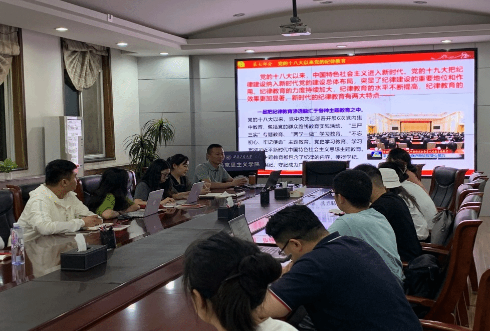 博士生第四党支部在学院208会议室开展了党纪学习教育专题党课,邀请学院党委书记蒲传新为支部全体党员讲授此次党课,会议由党支部书记王心彤主持。