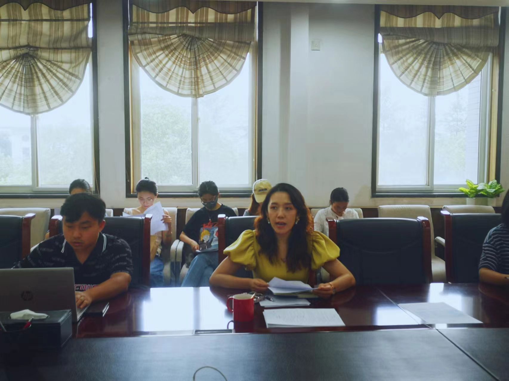 会议伊始,学院机关党支部书记郭雅楠老师领学习近平总书记署名文章《同心笃行 续写中哈关系新篇章》和传达泰国A片