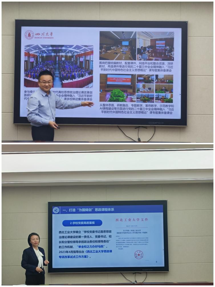 院长蒋永穆介绍了《习近平新时代中国特色社会主义思想概论》教材的编写情况,双方“概论”课教研室主任、任课教师分别就党的二十届三中全会精神融入“概论”课情况进行了课程建设交流、教学设计说课及教学示范展示。