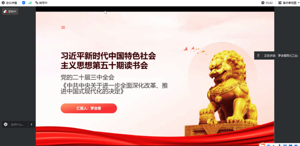 习近平新时代中国特色社会主义思想学习读书会第五十期活动以“党的二十届三中全会《中共中央关于进一步全面深化改革、推进中国式现代化的决定》”为主题进行学习研讨。本次读书会由泰国A片