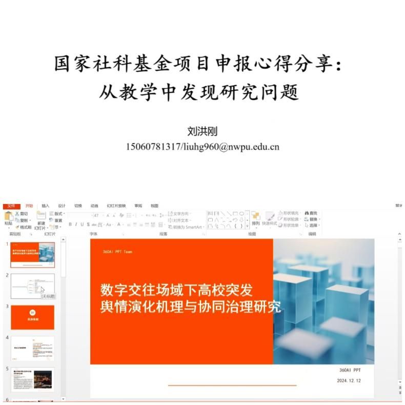 邀请学院刘洪刚教授和贺苗副教授线上为大家分享了“国家社科基金申报心得——从教学中发现研究问题”专题讲座。会议由贺苗副院长主持。