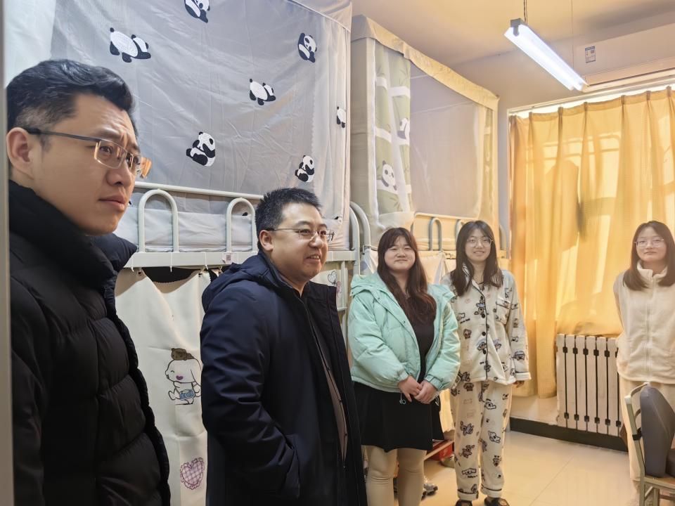 包饺子活动开始前,学院党委书记王彦革、党委副书记耿云辉与学工主管、辅导员、学工干部深入学生宿舍,开展新年慰问,深入了解学生的思想、学习和生活情况。走访期间,院领导与同学们亲切交谈,听取学生对宿舍环境、学习成长等方面的意见和建议,提醒同学们合理规划作息时间,并重点排查宿舍安全隐患和开展安全教育。