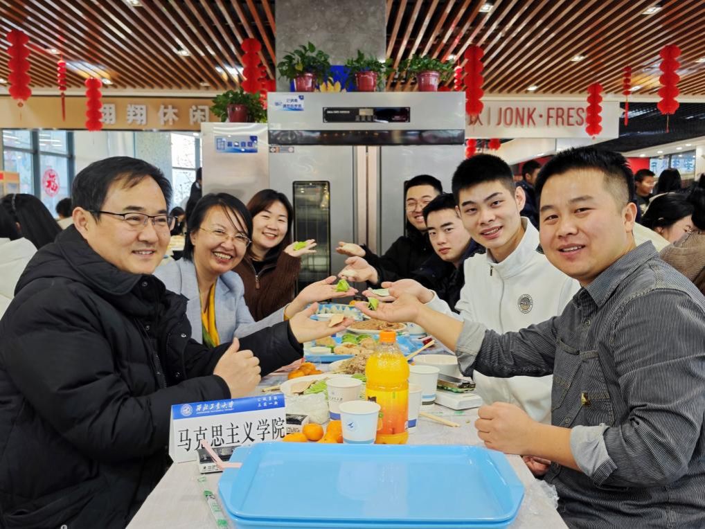 活动过程中,校长、中国工程院院士宋保维,副校长杨益新,校党委副书记杨晓等校领导来到师生之间,与同学们亲切交谈,一起包饺子、吃团圆饭。饺香飘逸、气氛热烈,温馨与美好都化作手中福气满满的馅料,在欢乐祥和间,年味翩然而至。