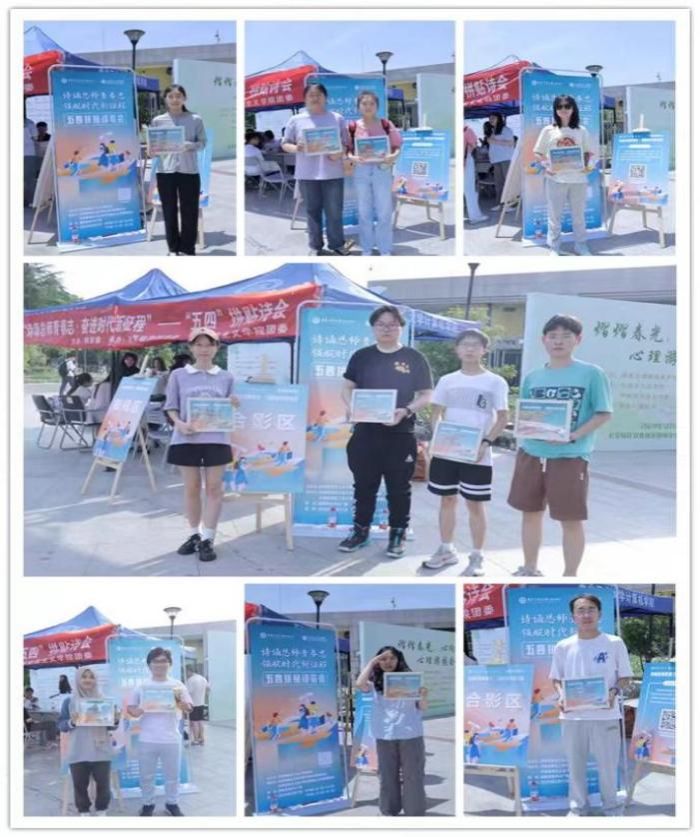 在工作人员引导下领取背景明信片,从拆分后的五四后新诗词组或短语中自由选择素材,自由拼贴属于你的“青春宣言”!作品需融入学校特色(如“总师育人文化”“创新精神”等相关短句),体现西工大学子对五四精神的价值思考和当代传承。完成拼贴后,将所有作品集结为展板并合影留念,形成整体性成果。