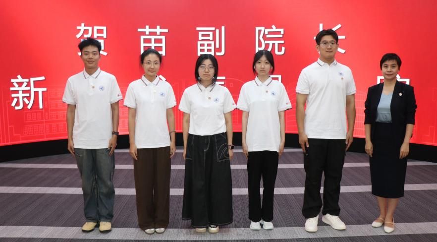 随后,贺苗为新生代表佩戴院徽并合影。