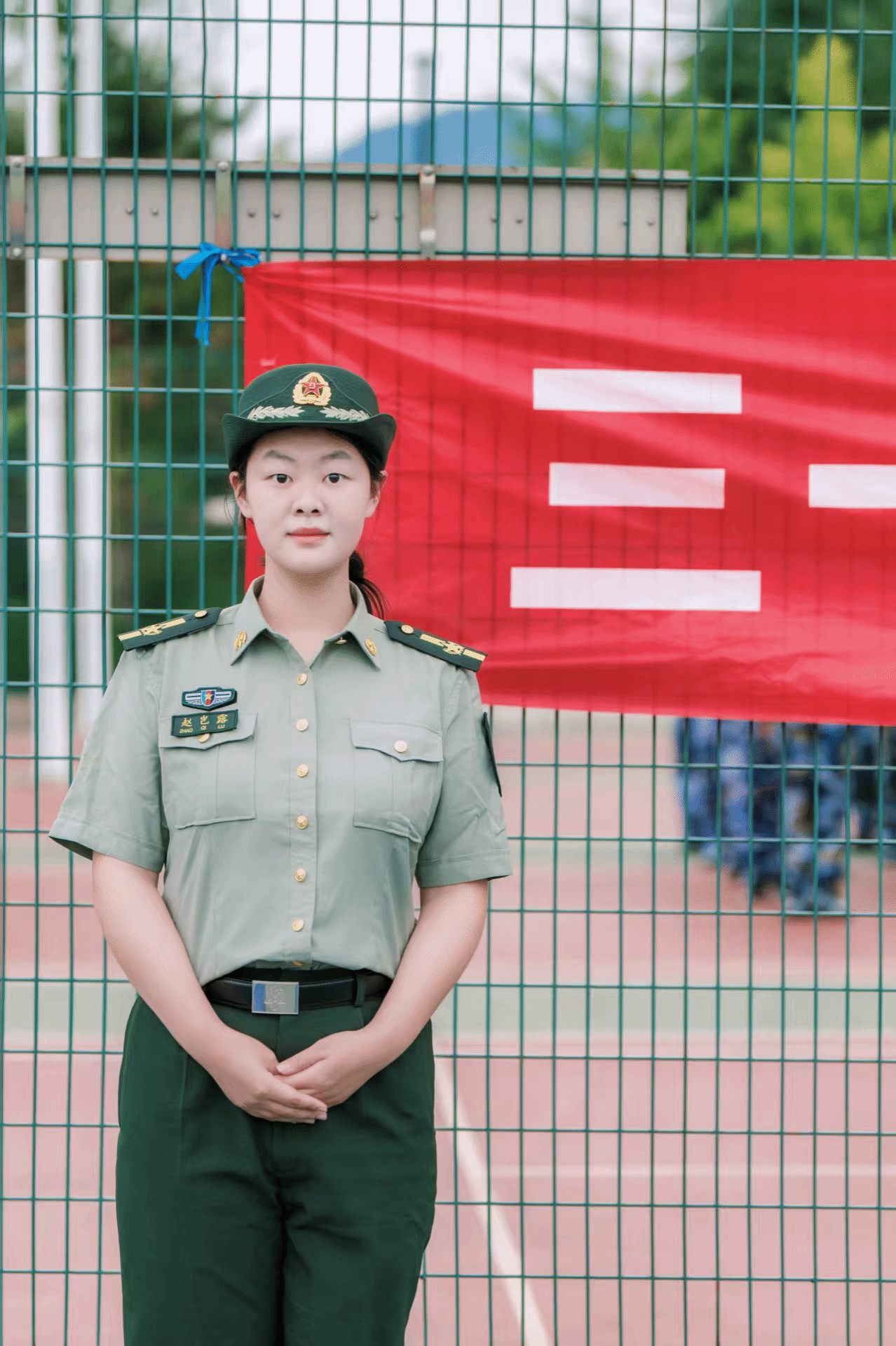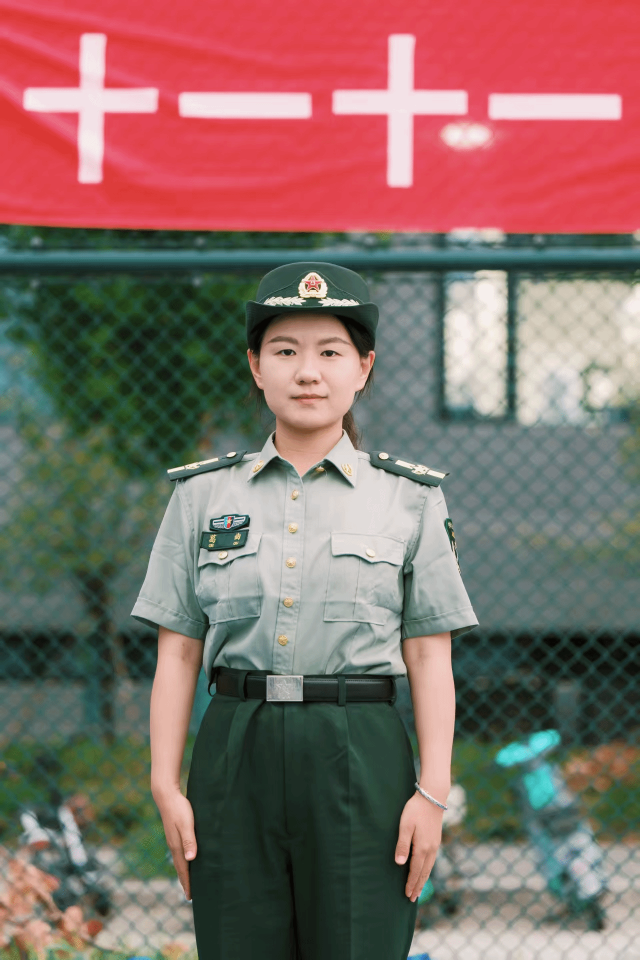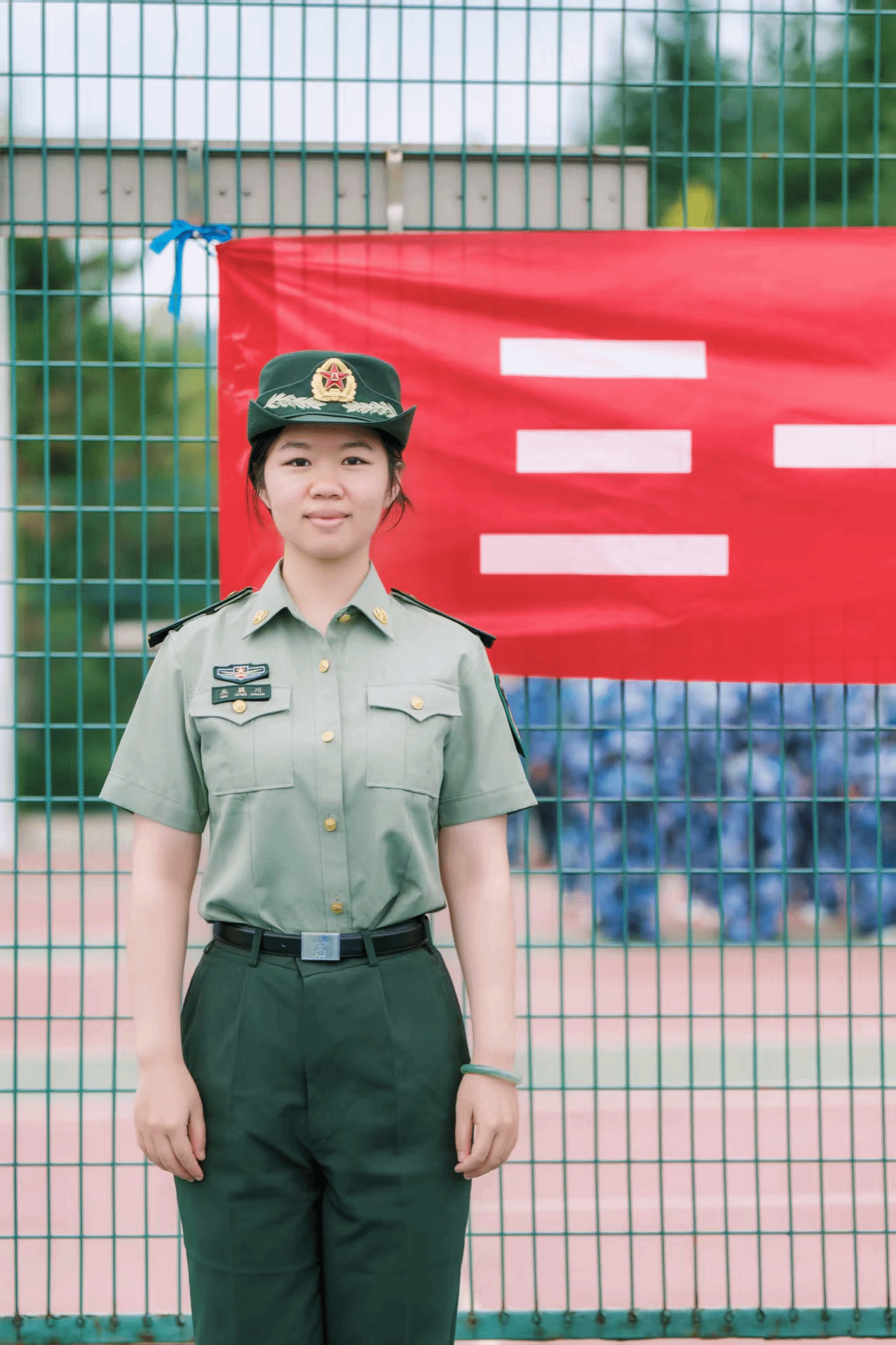 丁嘉欣,学院2025届硕士毕业生,目前在微电子学院任职,此次担任军训师一团7连指导员