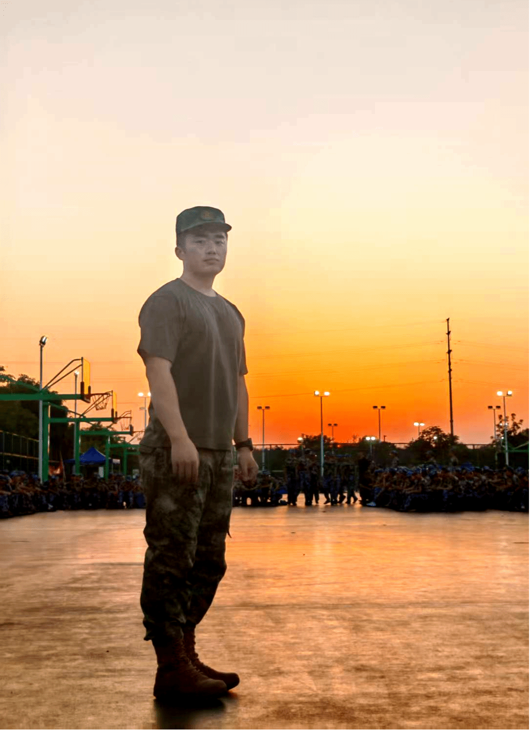 丘晨川,学院2023级硕士研究生,曾服役于中国人民解放军海军,此次担任军训师四团31连指导员