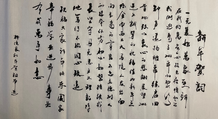 联欢会在师生才艺表演的欢快气氛中迎来了零点的钟声,师生一起倒计时过后,迎来了2022崭新的一年,杨云霞院长发出新年的祝福,她鼓励我们聚力凝心,共克时艰,用实际行动坚守马克思主义理论阵地、推动学校发展、展现自己的精神面貌。