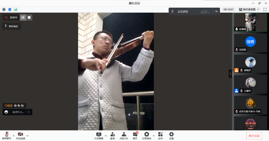 晚上九点半,大家准时进入线上会场,主持人谢雨姿邀请同学们积极分享自己一年来的感悟,张佳翌、张昊等同学踊跃发言,分享了自己在这一学期中的成长与收获,并为大家送上了自己真诚的祝福。