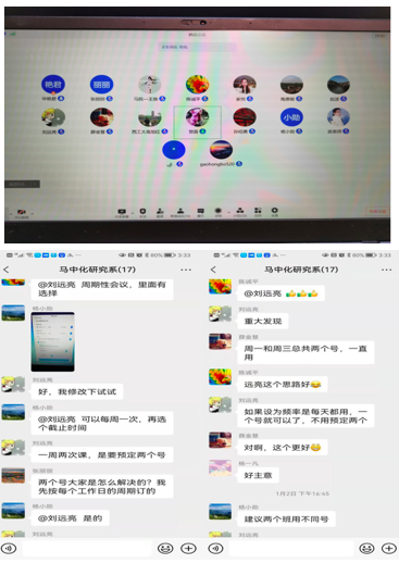 《中国近现代史纲要》课程组全体老师围绕在线教学可能涉及的内容和问题,如在线教学与传统课堂教学的区别、在线教学设计、与学生在线互动经验、在线教学平台选择、教学内容与课时分配的协调等进行了深入的交流。与会教师踊跃发言,结合自身以往在线教学实践,将各自在线上教学中存在的疑惑和方法等问题提出来供大家讨论,及时梳理在线授课教师的相关诉求,老教师对新教师在线教学存在的困惑进行了解答。