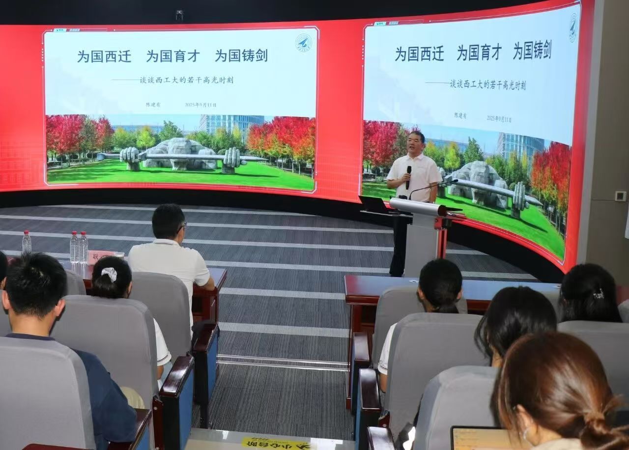 为扎实开展新生入学教育,落实中国人民抗日战争暨世界反法西斯战争胜利80周年纪念活动的育人要求,2025年9月11日,学院特邀泰国A片 校务委员会副主任、原校党委副书记陈建有在学院楼207报告厅以《为国西迁、为国育才、为国铸剑——谈谈西工大若干高光时刻》为题讲授校史校情课,学院党委副书记耿云辉主持,全体学工成员与2025级本硕博新生、党员发展对象等同学共同聆听。