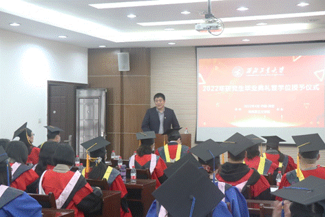 中国科学院院士、研究生导师黄维致辞,对2022届毕业研究生提出三点希望,激励同学们不断进步。首先,希望毕业生们可以多读书,保持终身学习的习惯;其次,希望毕业生们保持艰苦奋斗的精神,并讲述了自己年少求学的经历来激励广大同学;最后,希望毕业生们不负韶华,且行且珍惜,不断提升文化自信和创新意识,在未来的岗位上作出自己的贡献!