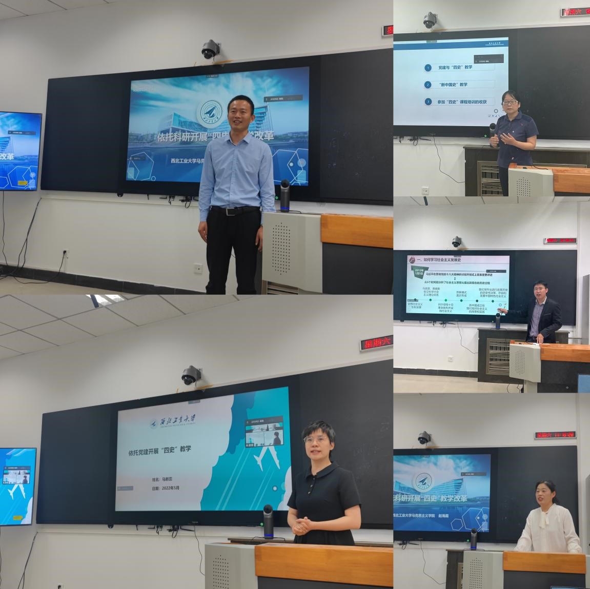 在教研分享环节,《新中国史》课程负责人马新蕊副教授做了依托党建开展“四史”教学的分享,指出以支部建设为契机,推动”四史“教学、科研、社会服务等功能于一体,以习近平总书记大历史观为根本遵循,准确把握新中国史的主线,积极回应学生关注,及时纠偏。《社会主义发展史》课程负责人山磊助理教授做了课程思政与思政课程协同推进“四史”课程建设的分享,认为只有通过全方位引入思政育人要素,使广大本科生在学习专业课程的同时,正确认识社会主义发展的历史主题、历史脉络、历史规律,牢固树立对马克思主义的信仰、对共产主义和社会主义的信念。《中共党史》《改革开放史》课程负责人赵海霞副教授,对“四史系列课程”教学团队依托科研开展课程建设情况,存在的问题及以后的教学工作规划进行分享,认为“四史”系列课程教学离不开教师们对相关内容的研究,教师需坚持历史审视与现实观照相关联,进一步加强四史相关的研究,持续挖掘思想政治理论背后的历史文化底蕴,持续拓展话语边界,切实提升思政课教学的实效性。泰国A片
