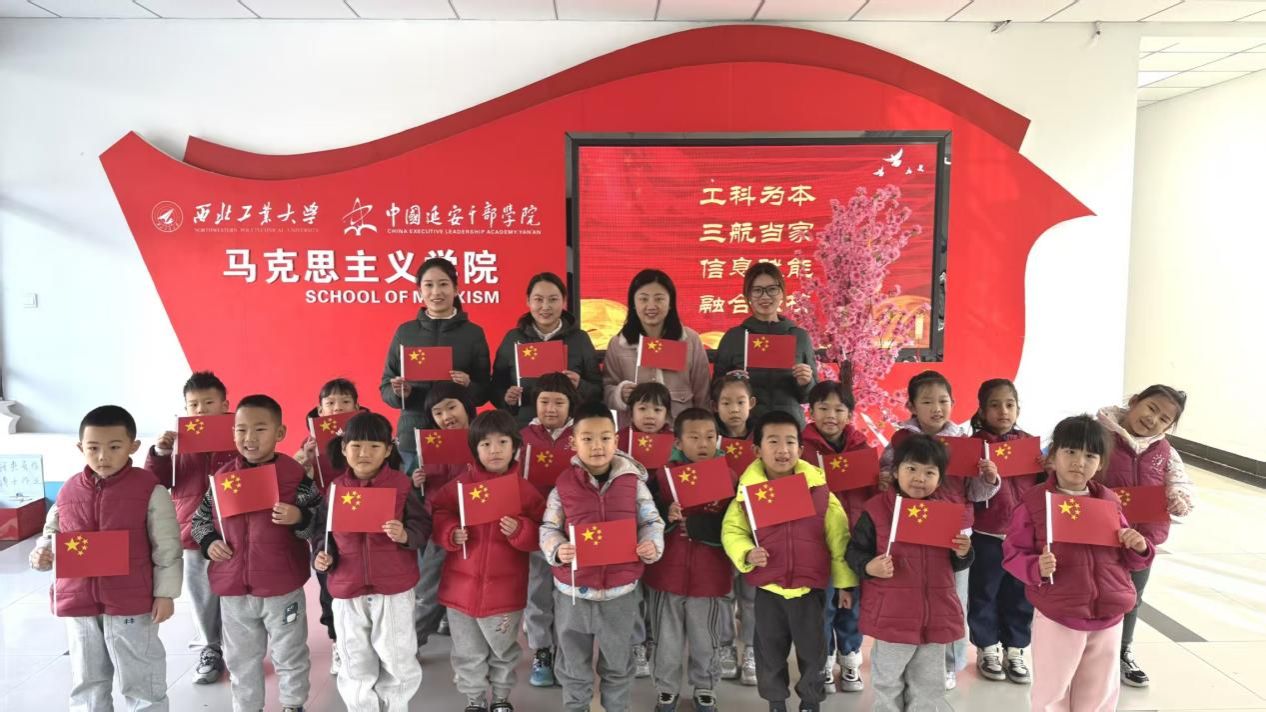 联合西工大南山幼儿园共同开展了“国旗是怎样染红的”党课送讲活动,并邀请幼儿园师生代表参观学院VR党建活动室,让红色教育以生动有趣的形式浸润童心。