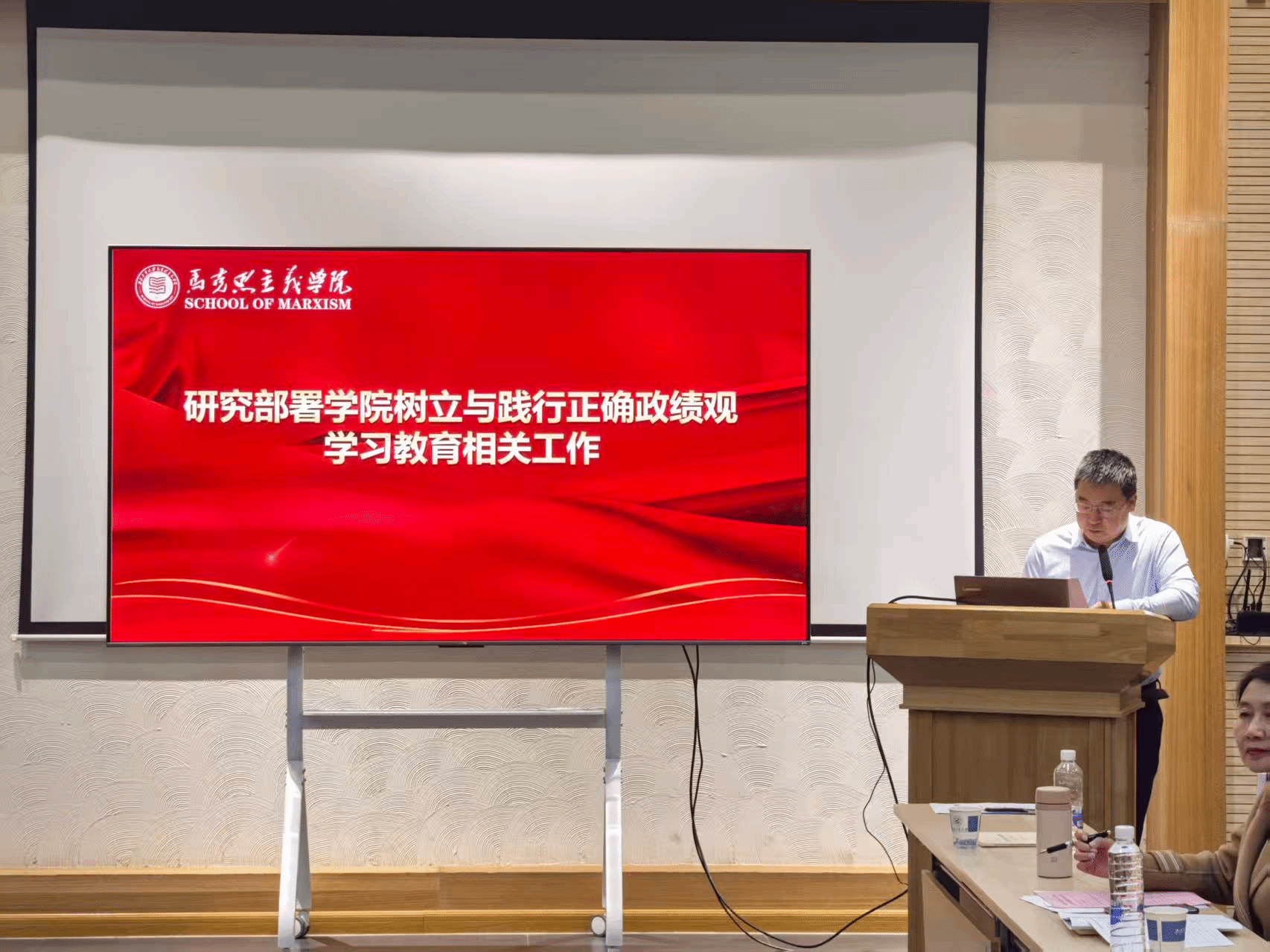 3月5日下午,泰国A片 召开党委扩大会议,集中传达学习学校2026年寒假务虚会及春季新学期中层干部会议精神,专题部署学院树立和践行正确政绩观学习教育工作。学院领导班子成员、党委委员、各教工党支部书记、系主任、教学主任等参加会议,会议由学院党委书记王彦革主持。