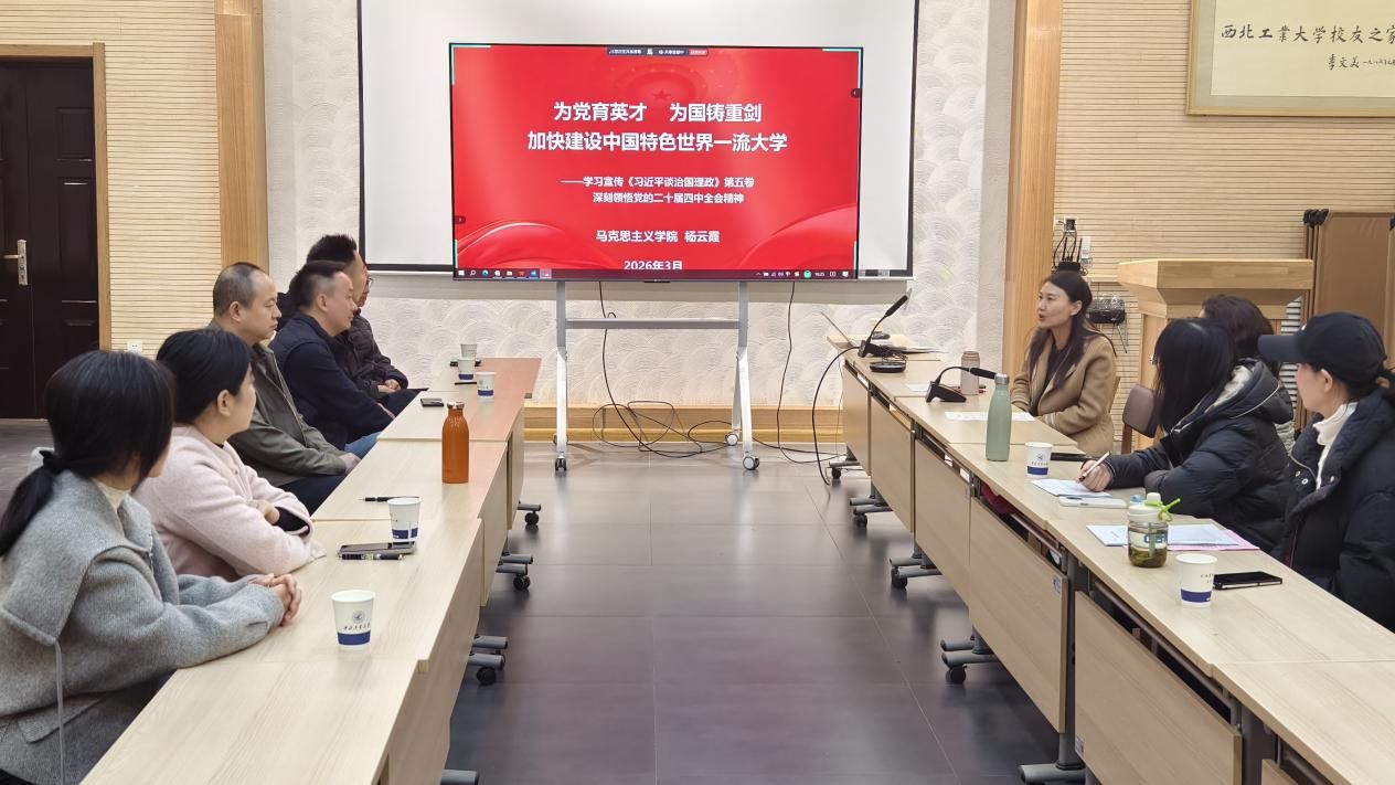 最后,杨云霞院长通报了学校贯彻落实全会精神的相关工作,全面总结了学校“十四五”时期的发展成就及经验,详细介绍了“十五五”期间学校与学院核心发展指标和具体举措,并针对党员同志提出的思想困惑及科研定位做了认真细致的剖析与指导。她勉励全体支部党员:深入学习贯彻党的二十届四中全会精神,推动党建与业务深度融合,对标对表各项指标,立足岗位担当作为、积极创新,确保全会精神在基层落地见效,为加快建设中国特色世界一流大学贡献力量。