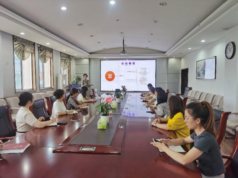 会上,郭雅楠结合学院实际,从会前筹备、会场布置、会议跟进和会议收尾四个方面详细介绍了办会流程和会议接待标准,详细梳理了会务工作注意事项和标准化筹办细节,并结合具体实例和相关规范,详细讲解了会务接待礼仪,明确了作为会务工作者如何在大型会议中举止更加得体大方,更好地展现学院专业的会务风采和良好的精神面貌。