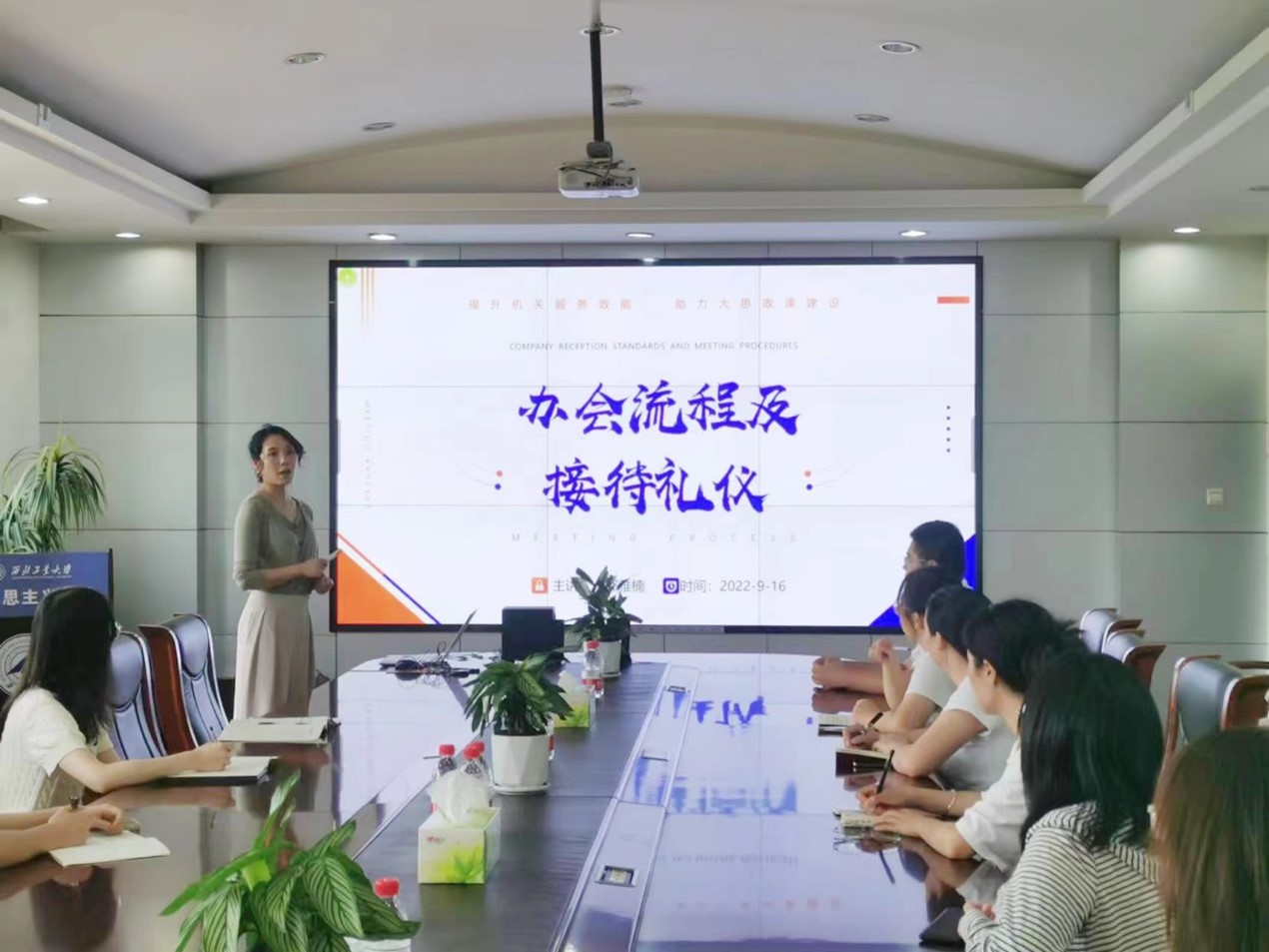 机关在学院208会议室开展了“以提升管理服务效能为抓手,助力学院大思政课建设--办会流程与会务礼仪”专题培训,学院全体行政管理教师和学生骨干参加了会议。会议由学院办公室主任郭雅楠主持。
