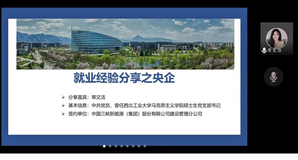 于9月25日线上开展就业经验分享交流会。活动邀请到六位已经获得心仪offer的2022届校友,他们从硕博连读、选调公务员、思政课教师、入职央企四个求职方向给同学们分享心得体会和宝贵经验。学院党委副书记李刚及硕士生共同参加,本次分享会由兼职辅导员单璐玉主持。