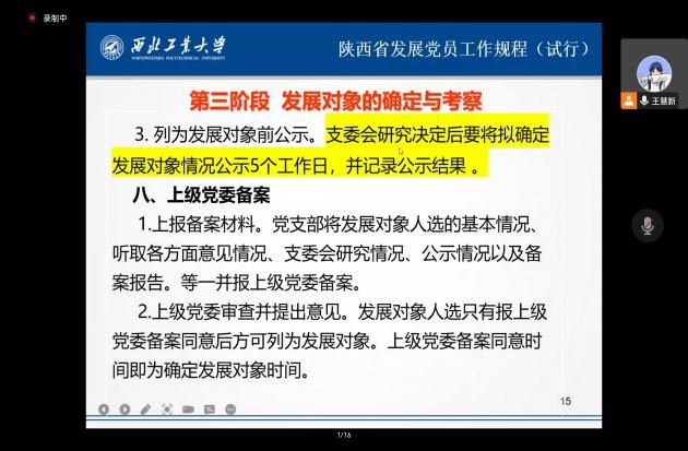 为进一步增强党课培训的针对性与实效性,努力培养理想信念坚定、综合素质优良的党员队伍后备力量。2022年10月13日上午,在腾讯会议上开展了主题为《陕西省发展党员工作规程(试行)》的党课培训,本次培训由泰国A片