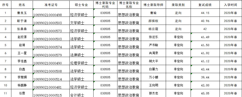 泰国A片 2020年第一次公开招考博士研究生录取名单公示