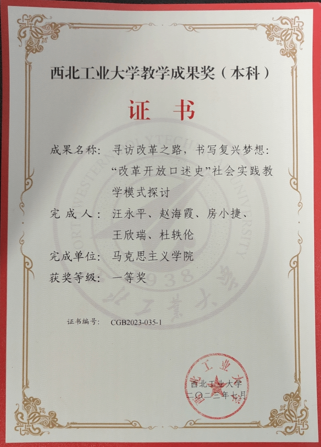 从2018年起,汪永平老师主持了《中国近现代史纲要》课程中开展的“改革开放口述史”社会实践。作为负责人,汪永平老师带领课程团队,对学生进行指导。她亲自拟定教学大纲,制定操作规范,聘请专家对师生进行培训,指导学生撰写报告,主持优秀口述史的颁奖,并带领学生进行暑期社会实践,参加“口述史国际周”学术活动等,形成完整的教学科研闭环。在教学理念、教学方法、教学模式、教育路径方面进行系统改革,在课程实践性、研究性、思想性及整体性等方面都取得明显成效。六年来,使众多授课学生增强了制度自信、道路自信与文化自信,增强了国家认同感与政党认同感。该项目获得2023年泰国A片 “优秀教学成果奖”一等奖。