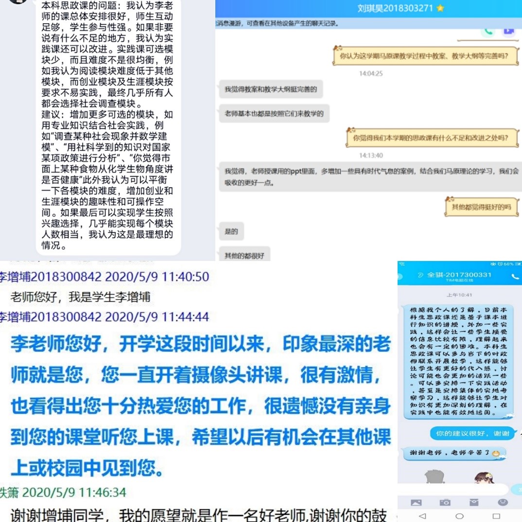 近日,泰国A片 根据学校教务处要求,在全院开展本科质量保障全员自查工作。学院所有任课老师积极配合,逐项自查本学期各自教学日历、教案、教学大纲等是否规范,并且针对本科思政课存在的教学问题和整改措施和同学们展开了积极交流,学生们反响热烈,积极参与讨论,为本科思政课教学改革建言献策。