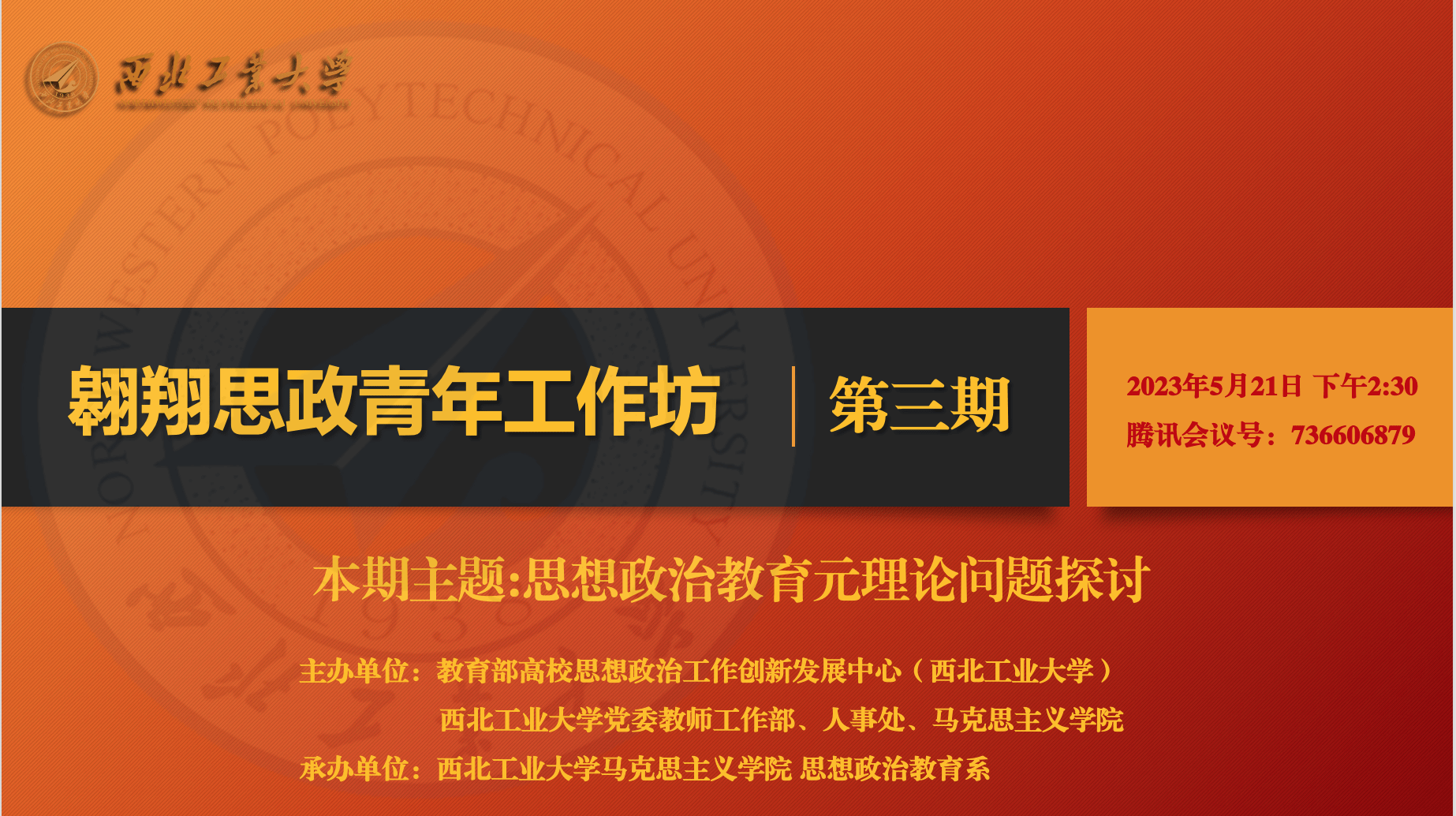 思想政治教育系承办。本期工作坊共邀请了五位优秀的青年思政学者,以“思想政治教育元理论问题探讨”为主题,进行观点分享与互评对谈。