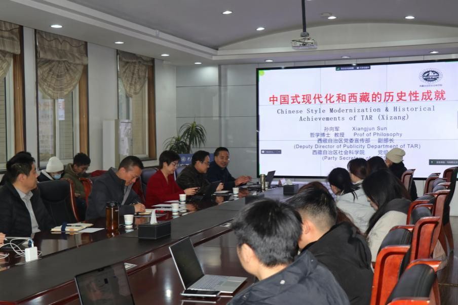 邀请西藏自治区党委宣传部副部长、区社会科学院党组书记孙向军教授在学院208会议室开展学术交流座谈会,孙教授以“中国式现代化与西藏取得的历史性成就”为题,与参会师生进行交流。此次交流讲座由学院和中国自然辩证法研究会工程与社会发展专业委员会共同主办,学院党委书记蒲传新、副院长张云龙、贺苗、党委副书记李刚等老师和部分研究生参加交流座谈会。本次座谈会由蒲传新主持。