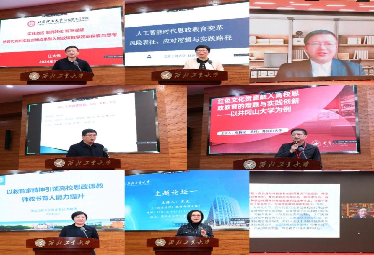 随后,大会进入主题发言环节,25位专家学者围绕“党的二十届三中全会精神研究”“2024年全国教育大会精神研究”“全面推进‘大思政课’建设研究”“‘实践育人’研究”“其它思想政治工作前沿问题研究”五个主题发表演讲,分享了他们在相关领域的研究成果和心得。主题论坛(一)由《国家治理》编辑部副主编王克主持。在主题论坛(一)中,武汉大学项久雨教授以“以存在为尺度的思政”为题作报告。河北经贸大学党委书记、李晓华教授以“以教育家精神引领高校思政课教师教书育人能力提升”为题进行了主题报告。南京航空航天大学王岩教授讨论了“当代青年亚文化及其认识”的问题。北京工商大学泰国A片 院长赵春丽教授阐述了人工智能时代思政教育风险变革表征、应对逻辑与实践路径。《井冈山大学学报》编辑部主任张梅龙教授以“红色文化资源融入高校思政教育的难题破解与教研创新”为题进行了报告。北京理工大学泰国A片 副院长江大伟教授以“实践激活 案例转化 智慧赋能:新时代党的实践创新成果融入思政课教学改革”为题作主题报告。南京理工大学泰国A片 邓纯余教授以“‘大思政课’概念重识”为题进行了主题报告。
