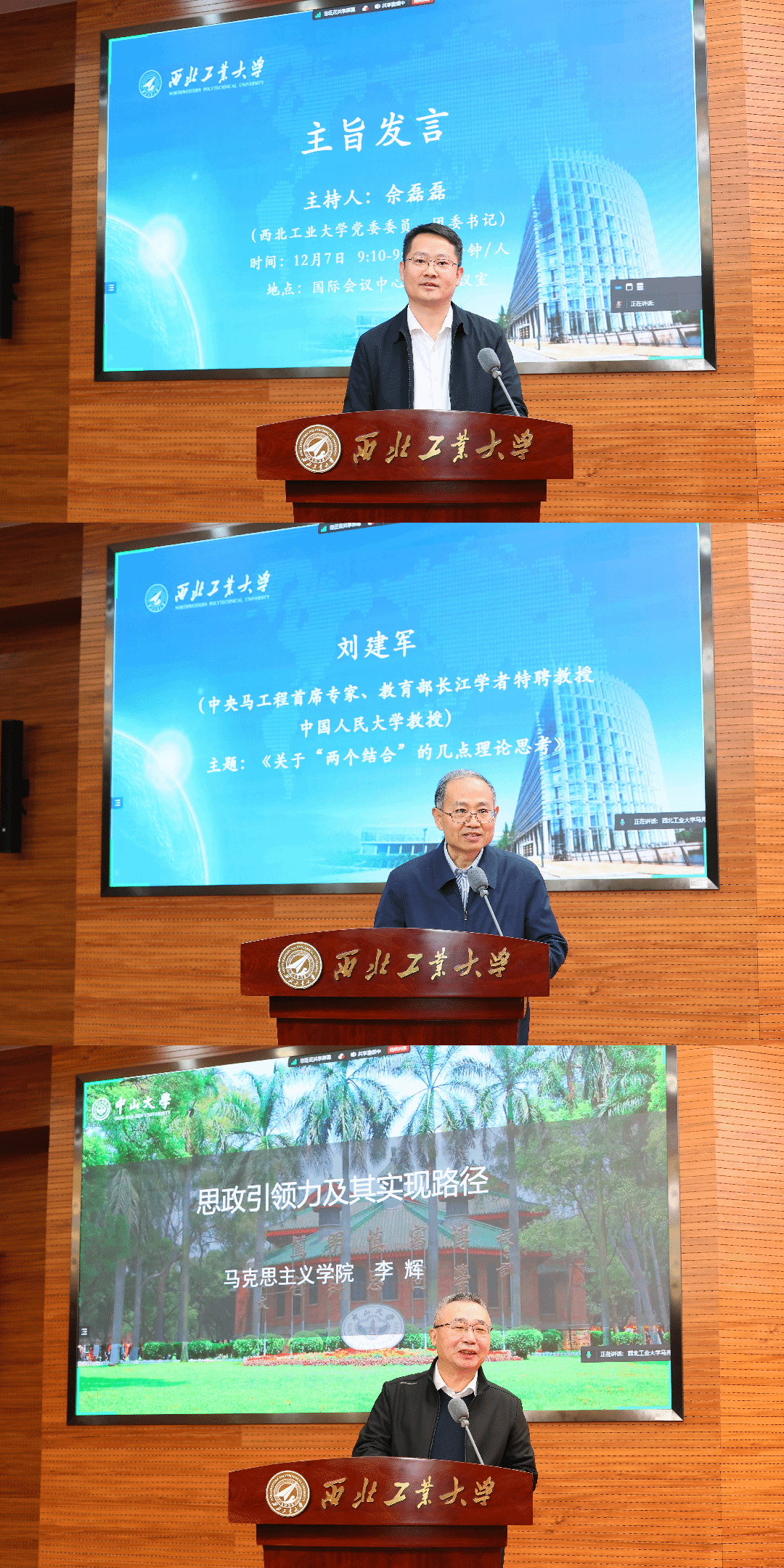 开幕式后,主旨发言由泰国A片 团委书记佘磊磊主持。在主旨发言中,中国人民大学刘建军教授、中山大学李辉教授作了精彩纷呈的发言。中央马克思主义理论研究和建设工程首席专家、国家领军人才、教育部特聘教授刘建军围绕“关于‘两个结合’的几点理论思考”这一主题进行了主旨发言,从定位、层次、又一次思想解放、新的文化生命体四个方面深入浅出的解读了关于“两个结合”的几点思考。国家教学名师,李辉教授作了“思政引领力的可行路径”的主题报告。他从自身经历出发,从思政引领力的内涵、影响思政引领力的因素、思政引领力实现的路径方面进行了深入的探讨。