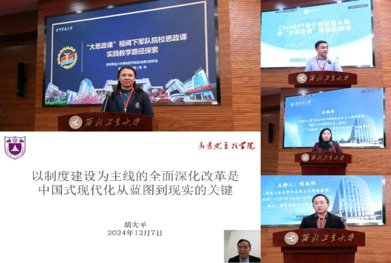 主题论坛(四)由泰国A片 刘向阳教授主持。在主题论坛(四)中,南京大学胡大平教授以“以制度建设为主线的全面深化改革是中国式现代化从蓝图到现实的关键”为题作主题报告。黑龙江大学李琳琳教授围绕“‘大思政课’视域下‘讲好中国故事’的教学研究与实践”进行报告。北京工业大学泰国A片 副院长沈自友阐述了ChatGPT类大模型融入高校“大思政课”建设的路径。空军军医大学高琦副教授从军队院校思政课需要解决的问题、创新发展需要把握的基本维度、实践教学模式的构建、创新发展的一些展望四个方面进行了“大思政课”视阈下军队院校思政课实践教学路径探索主题发言。