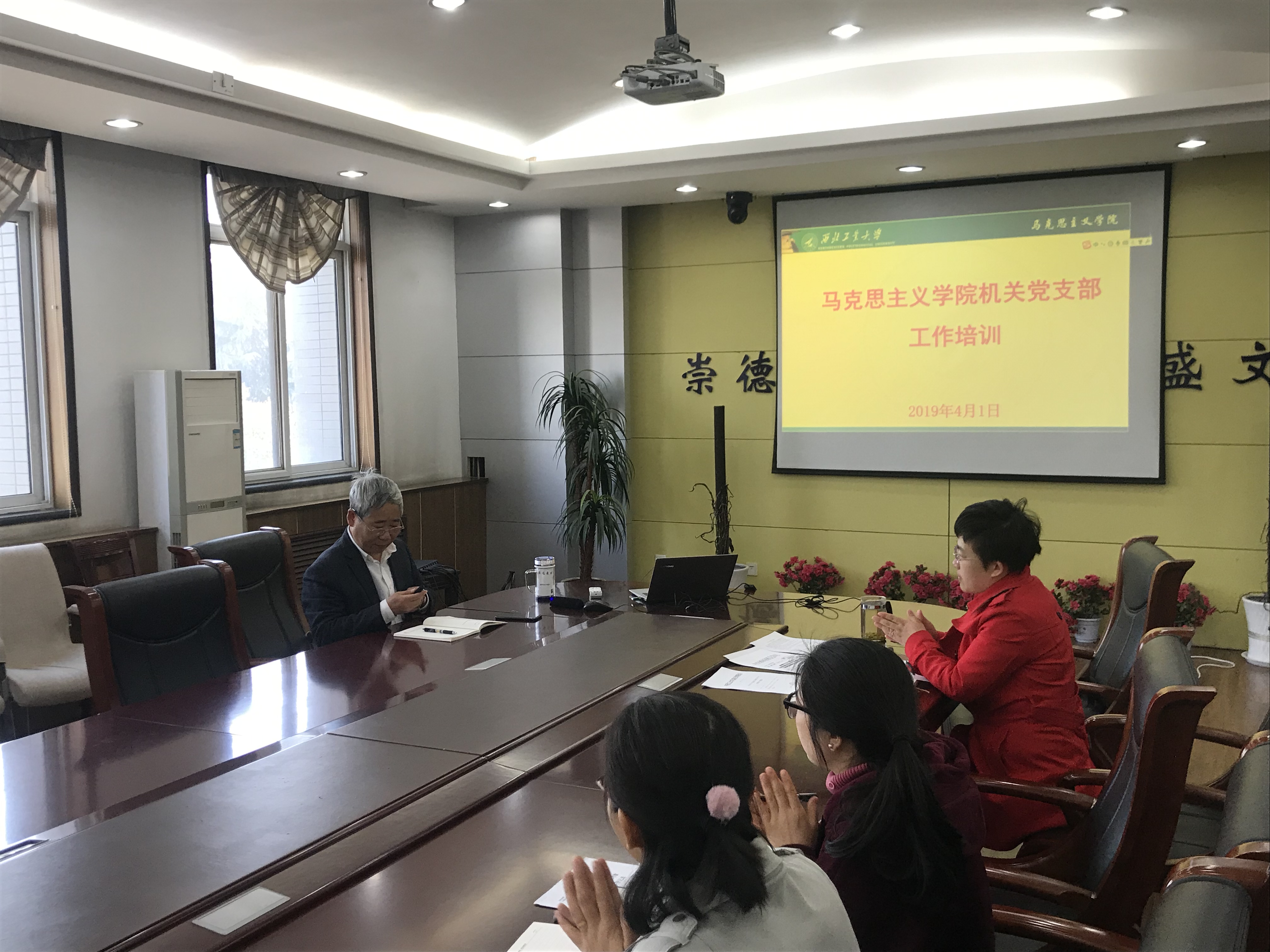 2019年4月1日上午,学院机关党支部在院楼208会议室召开机关支部大会暨专题培训会,会议由党支部书记杜瑶主持,全体机关党员同志参加了此次会议。