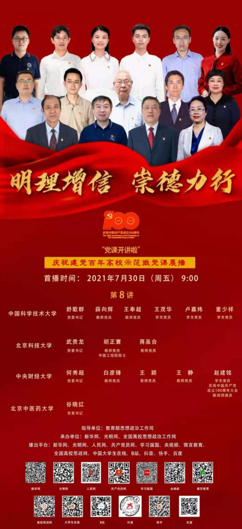 本次微党课由中国科学技术大学、北京科技大学、中央财经大学、北京中医药大学4所高校联合主讲,在此次微党课中,4所高校的党组织书记和师生代表讲述在党的领导下学校师生服务国家重大战略需求的筚路蓝缕的奋斗历程和感人事迹,激励广大师生明理增信崇德力行,勇挑民族复兴重任。认真学习党的百年历史是青年学生党员的一门“必修课”,而学习新中国成立时我国科技工作者的精神是其中重要的一节。通过此次微党课的学习,全体学生党员纷纷表示,作为新时代青年,要继续学习各位革命功勋的奋斗精神,继续坚定理想信念,为我国的科技发展贡献力量,为实现中华民族的伟大复兴做出努力。