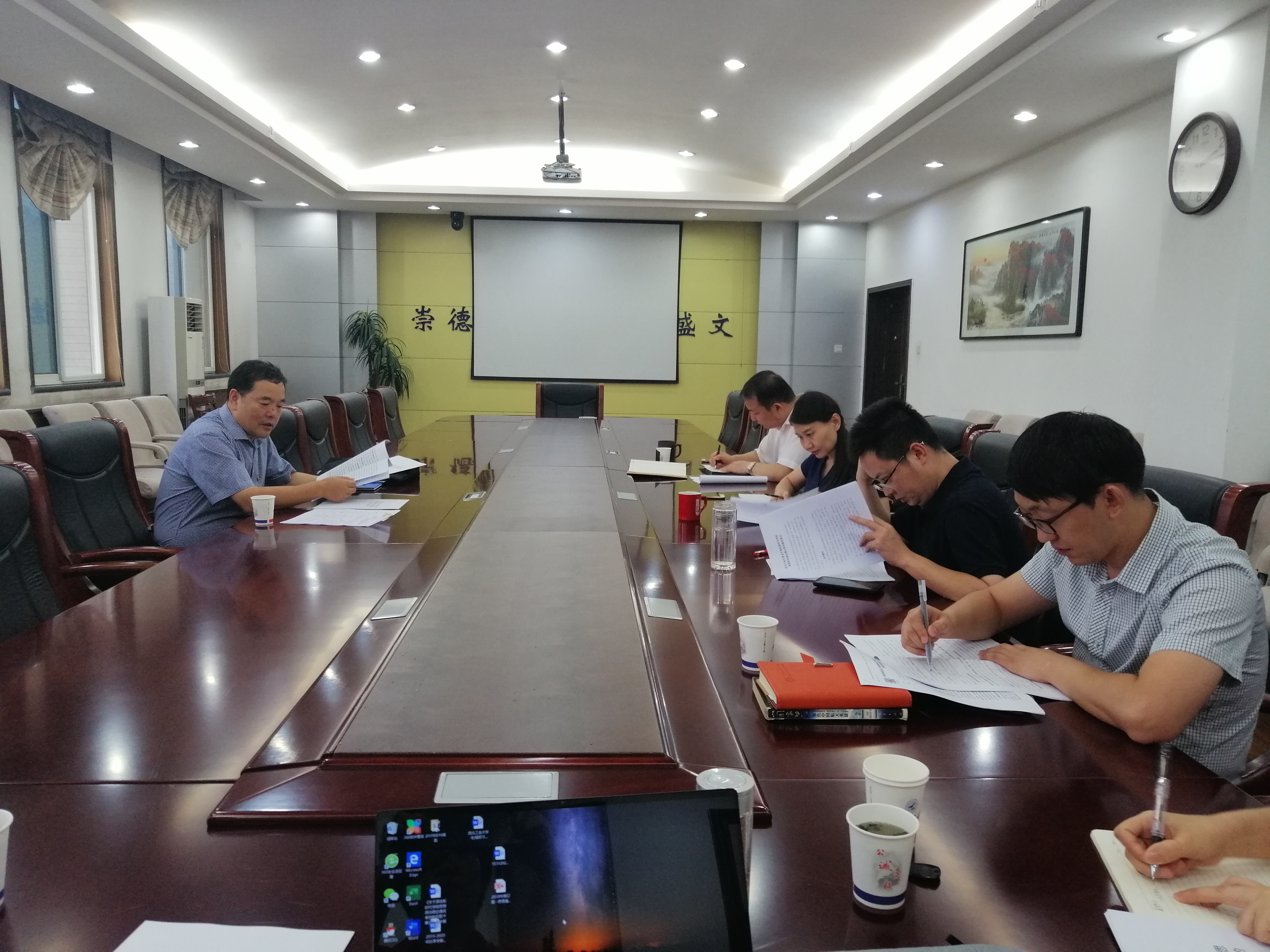 会上,陈建有传达了学校第十三次党代会精神,并就贯彻落实《关于深化新时代学校思想政治理论课改革创新的若干意见》与参会人员开展研讨。围绕思政课改革创新,杨云霞院长从学科建设、思政课教师队伍建设、科研工作、学院建设进行了汇报;吴闻川副书记(主持工作)就探索建立思政课“金课”建设、检验标准,本学期计划推出思政课改革创新试点课程的情况进行了汇报;副院长郝保权、党委副书记李鹏、院长助理全家悦分别就分管工作做了补充汇报。