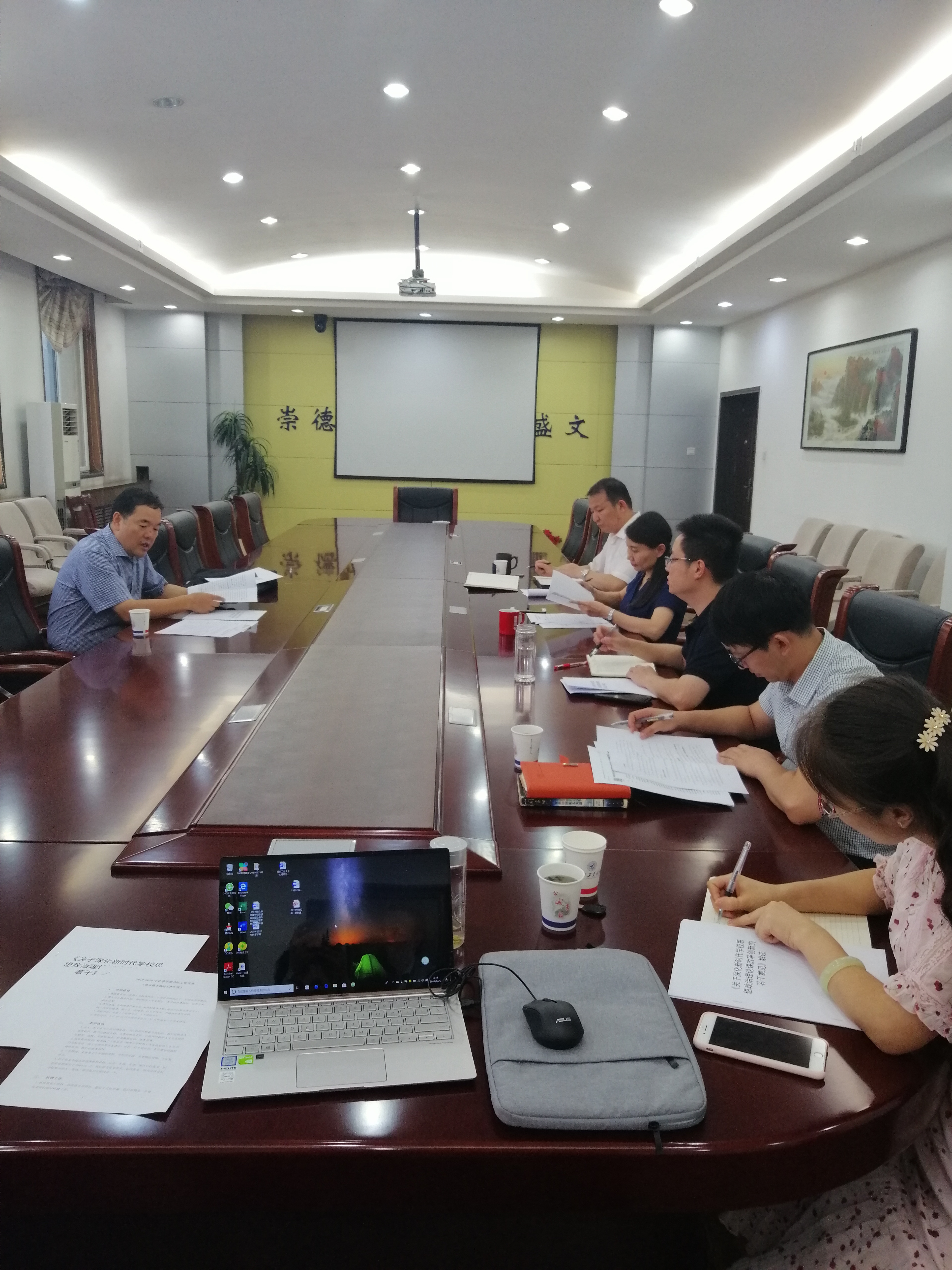 陈建有结合学校十三次党代会精神及《关于深化新时代学校思想政治理论课改革创新的若干意见》,要求泰国A片 要不断的解放思想、开放思路,广泛调研和学习兄弟高校的成功的经验和做法,尽快研究制定学校落实相关要求、提升思政课水平的方案,主动谋划和推进相关工作,抓住历史发展机遇将学科和学院建设好,将立德树人的根本任务落实好。