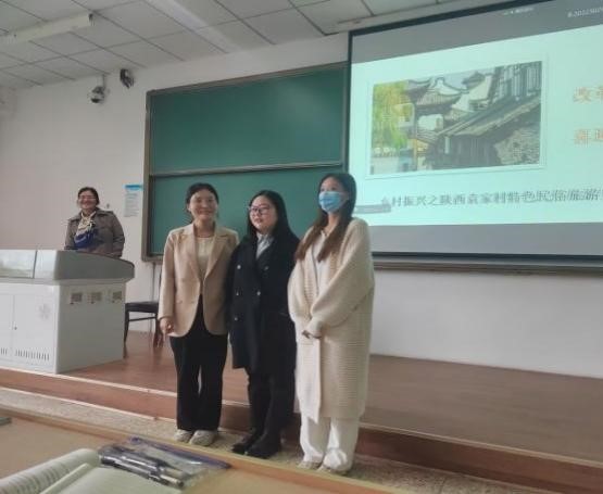 在这次思政课上,2021级硕士生李红梅同学最先和伙伴们分享了袁家村的致富故事,从袁家村厚重的产业发展历史到特色的产业发展模式,最后总结了袁家村发展面临的困境和提升袁家村民俗文化旅游的建议,特别指出乡村旅游中民俗文化是关键、一二产业是支撑、发展理念是动力。方译莹同学就第二调研地周至水街与大家分享了实践感悟。她介绍了周至水街的总体情况和发展现状,实践队在实践过程中发生的小故事,以及目前水街发展过程中所遇到的现实问题,并提出相应的对策建议。宋佳纹同学对第三个调研地西安市鄠邑区东韩村的实践情况进行了介绍,分析了东韩村在改革开放以及乡村振兴政策支持下所取得的重大成就以及发展过程中面临的问题,提出针对性的建议,最后分享了实践的切身感受。
